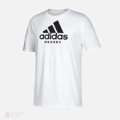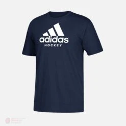 The crewneck shirt boasts the 3 infamous stripes of Adidas on the front center of the shirt. The Adidas hockey branded shirt also offers an athletic look with their Badge of Sport logo on the chest.