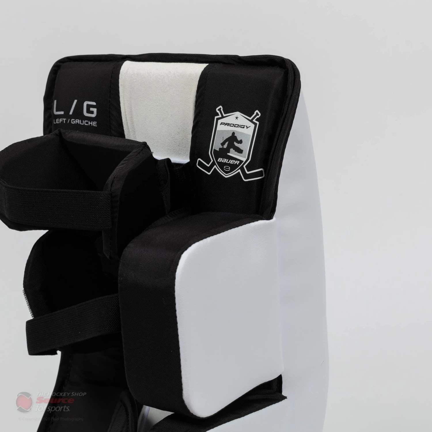 The Bauer GSX Prodigy youth goal pad combines lightweight, protective foams, flexible materials and a parent-friendly strap adjustment system to provide a comfortable fit with a high level of protection.