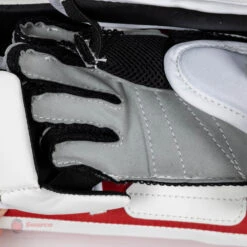 The CCM Extreme Flex E5.5 Youth Goalie Blocker is a stock only color offering, available in a the following colorways; Chicago, Detroit, Toronto, All White, White / Black, and White / Navy. The E5.5 Blocker is available in Regular and Full Right hands.