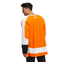 Pull on this adidas Philadelphia Flyers authentic home jersey, and get the gang together for game night in your fan cave. AEROREADY keeps you cool and dry as you wait for the puck to drop at center ice. The big crest out front, shoulder patches and a fight strap with a snap closure keep the look legit. This product is made with Primegreen, a series of high-performance recycled materials.