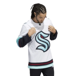 Celebrate Seattle hockey when they’re on the road in the Seattle Kraken Away Adidas PrimeGreen Senior Jersey. Mesh ventilation and moisture-absorbing AEROREADY ensure you stay dry and comfortable as you root for Seattle. Its loose fit and fight strap with a hook-and-loop closure stay true to the classic jersey look. This jersey is made with Primegreen, a series of high-performance recycled materials.