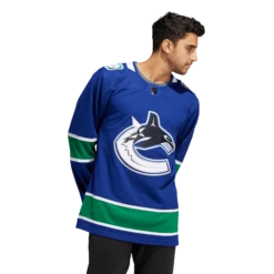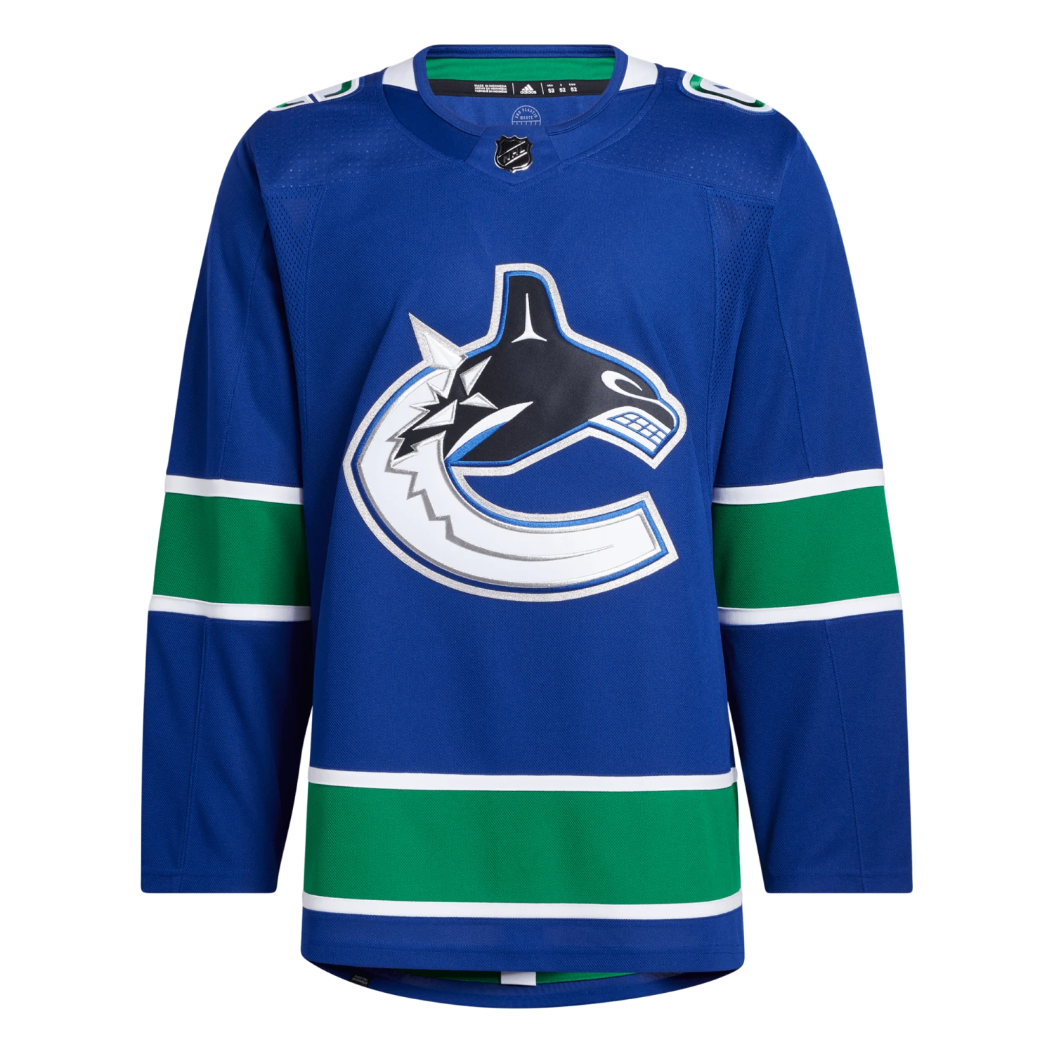 Cheer on the Vancouver Canucks as they close in on their first Stanley Cup. This adidas authentic home jersey features a big crest out front, shoulder patches and a fight strap with a snap closure so it mirrors what the players wear. AEROREADY keeps you cool and dry as your hands fly higher with every win. This product is made with Primegreen, a series of high-performance recycled materials.