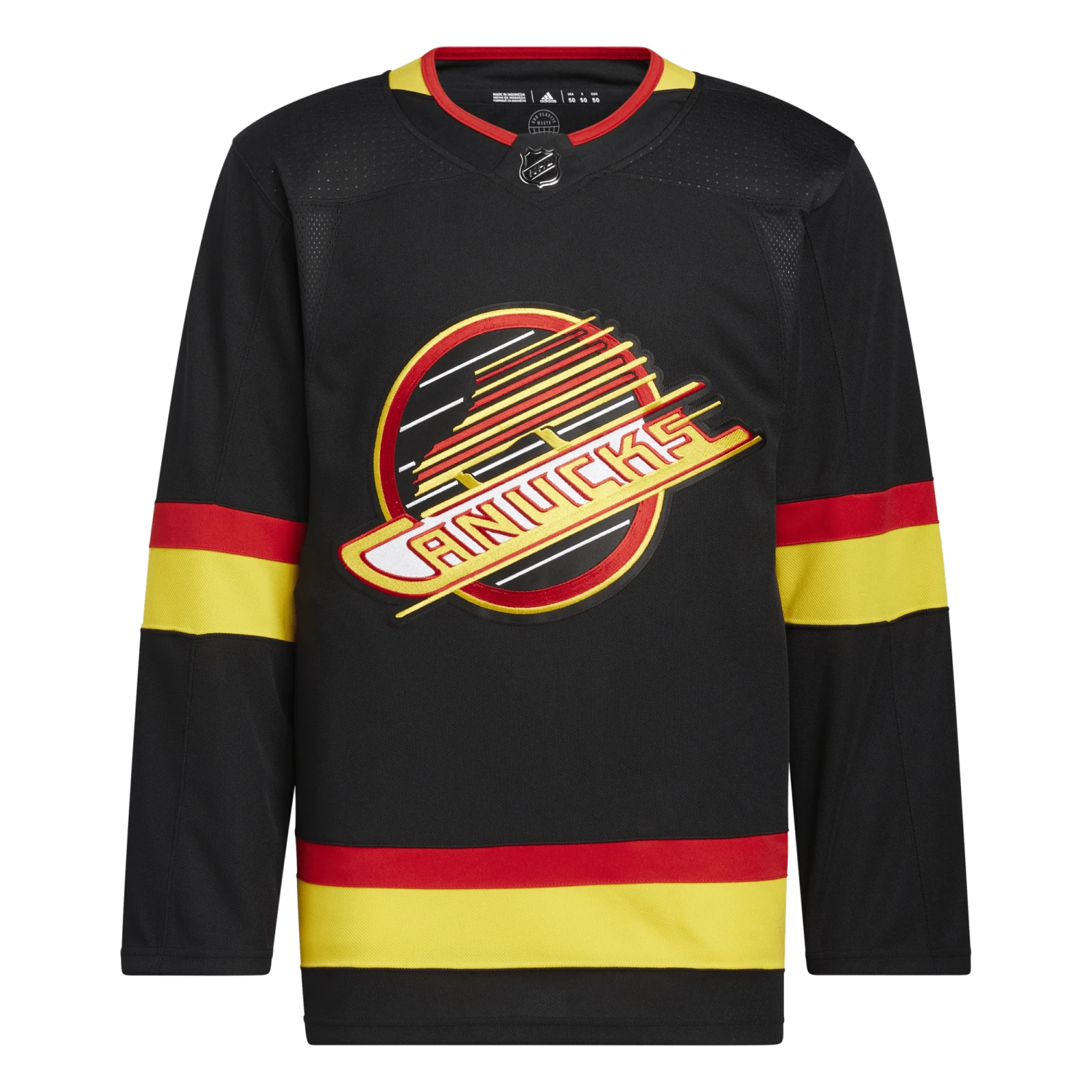 Pull on this adidas authentic retro jersey, and take a trip back to the ’90s, when the Interweb was just a baby, and the Vancouver Canucks broke all the rules with their wild sportswear designs. AEROREADY keeps you dry and ready for action as you relive fun times when fans did the Macarena during timeouts. Made with 100% recycled materials, this product represents just one of our solutions to help end plastic waste.