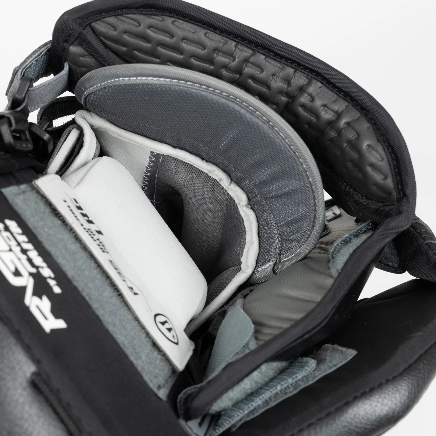 The next installment of Warrior’s Ritual goalie gear series is finally here; the Ritual G6 Pro+ blocker looks to bring a solid combination of what you already liked in previous models and some new tech. Features include CoverEDGE+ technology, a 20° board shape, HyperComp reinforcements, and X-Foam index finger protection.